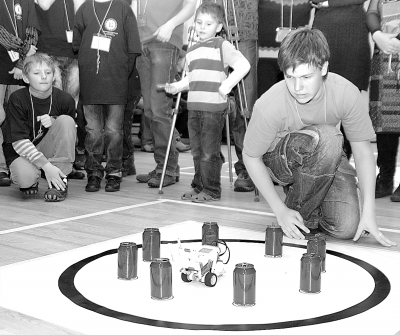 12月11日,在俄罗斯城市下诺夫哥罗德,学生观看机器人比赛。当日,俄罗斯城市下诺夫哥罗德举办第二届学生机器人编程竞赛,来自当地近20所中学及大学的代表队参加了比赛。低年级学生的比赛项目是机器人轨道竞速,而高年级学生的比赛项目是机器人清除场地障碍。 新华社发