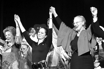 12月12日,在丹麦首都哥本哈根,丹麦女王玛格丽特二世(右一)在圣诞芭蕾“一个托沃利的梦”演出结束后与剧组人员一道向观众致谢。12月11日和12日,丹麦女王玛格丽特二世三十多年的好友、著名芭蕾舞编导苏珊·赫林导演的圣诞芭蕾“一个托沃利的梦”在哥本哈根精彩上演。这场圣诞芭蕾由女王亲自布景、指导服饰和描绘海报。