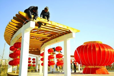 近日,首届山西万荣人民公园庆元旦迎新年大型赏灯游园会正加紧筹备,即将向游人免费开放。新华社发(闫 鑫摄)