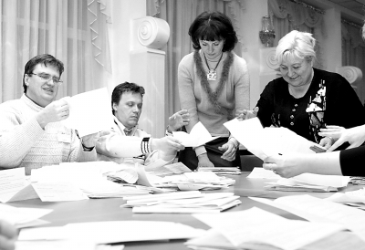 12月19日,工作人员在白俄罗斯布列斯特州一投票站统计选票。当天,白俄罗斯举行总统选举。根据民意调查机构公布的出口民调结果,白俄罗斯现任总统卢卡申科获得了过半数选票,赢得总统选举。 新华社/白通社