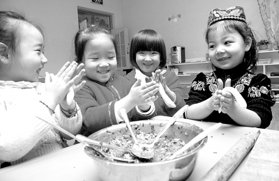 12月21日,新疆哈密市实验幼儿园的小朋友在制作饺子皮。当日,哈密市实验幼儿园开展“包饺子 话冬至”传统文化教育活动,通过包饺子和讲解有关冬至的故事,让孩子们感受中国传统民俗文化。12月22日是冬至,我国北方地区有吃饺子的习俗。