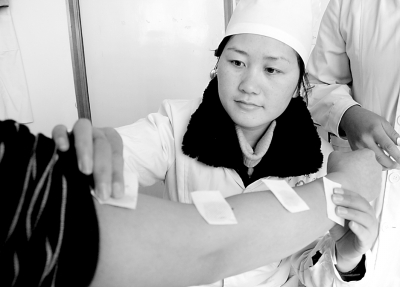 12月22日,山东省临沂市郯城县一家医院的中医在为患者贴敷。12月22日是二十四节气中的冬至,开始进入一年中最冷的“三九”天,中药进补、穴位贴敷等民间传统的养生方法成为各地市民冬季养生的热门途径。