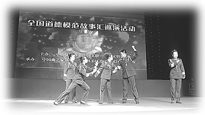 这是由中央文明办、中国文联主办,中国曲协承办的“全国道德模范故事汇”巡演活动首场演出中的一幕。此次“全国道德模范故事汇”活动,邀请了曲艺界名家新秀,运用讲故事的形式,从全国道德模范中选取了多个道德模范先进事迹,向全社会传播善行义举,引人向善向好。