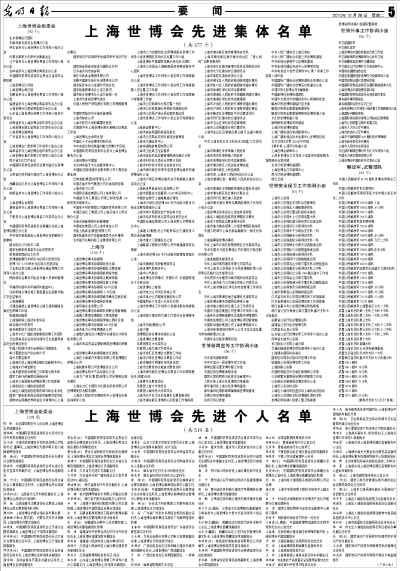 上海世博会先进集体名单