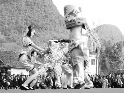 新春时节,贵州省荔波县歌舞团送戏下乡,把传统民族歌舞融入时尚元素,每场表演都受到当地少数民族的喜爱。 本报记者 郭红松摄