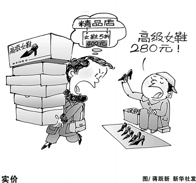 | 实价 春节临近,各大商场纷纷推出“大血拼”“特价打折”等一系列赚足人气的促销活动,但其中不乏“打折是假,涨价是真”的欺骗手法,不少消费者直呼上当。工商部门提醒广大消费者要理性消费,对近期铺天盖地而来的广告也需保持冷静。新华社发 |