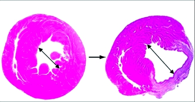 最后一张图片前为健康的心脏 后为心肌梗死的心脏