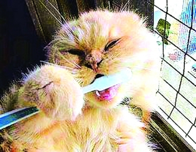| 猫的牙齿要照顾好 猫很少有蛀牙,因为它的牙齿呈玉米形,唾液又不是酸性,而且猫食中的碳水化合物含量相当低。不过请注意:若猫以甜食当零嘴,就可能发生蛀牙。若你家里有宠物猫,应经常刷牙再食加上定期到兽医院洗牙,让猫保有健康和光亮的牙齿。为猫选取适当的咬嚼玩具,也可以避免它们乱咬不适当的东西。 |