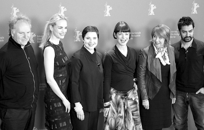 2月10日,柏林电影节竞赛单元评委会主席、著名意大利演员兼导演伊莎贝拉·罗塞利尼(左三)携评委会全体成员亮相新闻发布会。第61届柏林电影节将于2月10日至20日举行,其间将展映来自58个国家的约400部电影。新华社发