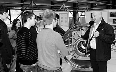 2月10日,在瑞士日内瓦欧洲核子研究中心磁铁检验中心,工作人员(右)向来宾介绍这里的运行情况。大型强子对撞机需要的磁铁全部在这里组装并接受检测,最终被安放到地下环形隧道内,保证隧道里高速运动的粒子按指定方向飞行。欧洲核子研究中心位于瑞士日内瓦附近,跨瑞士和法国边境,是全球重要的粒子研究机构,重点模拟研究宇宙大爆炸之后的最初状态。该机构大型强子对撞机建于地下100米、总长约27公里的环形隧道内,它是目前世界上最大的粒子加速器,用于研究宇宙起源和各种基本粒子的特性和相互作用。2010年,大型强子对撞机圆满完成质子束流对撞和铅离子加速及对撞试验。此后对撞机进行停机保养。2011年1月31日,欧洲核子研究中心发布公告说大型强子对撞机将从2月开始持续运行至2012年底。 新华社发