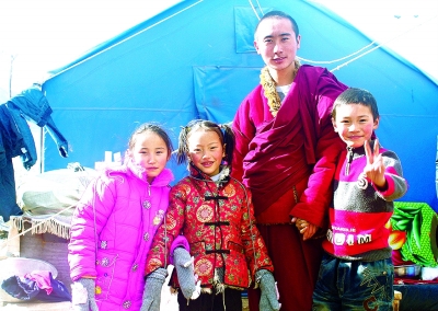| 尕玛查松喇嘛回家和弟弟妹妹团聚 本报记者 谢文摄 |