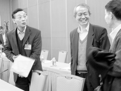 北京铁道大厦。小组会议讨论后,委员们仍兴致勃勃在交谈。本报记者 靳晓燕摄