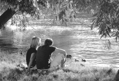春天万物复苏,象征着美好事物的开始,无疑也是恋爱的季节。在布拉格伏尔塔瓦河美丽的斯特热列茨小岛上,一对年轻恋人坐在绿茵树下,情意绵绵。水中的野鸭在他们身旁嬉戏,春风轻轻吹拂着他们的脸颊和发丝,好一幅美丽的图景,春天里爱就是如此的美丽。