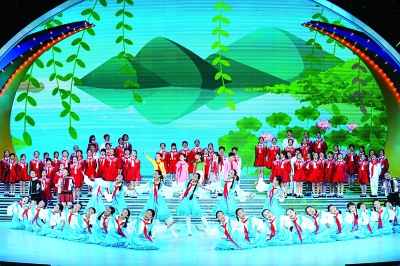 绚丽的舞台,大屏幕上不断变换着奇观,来自北京、辽宁、广东、四川、浙江、云南、新疆等十几个省市自治区,包括部队和地方艺术团体23个,参加演出的人数突破千人,可以和“春晚”相毗美。宋祖英、阎维文等著名艺术家推掉了无数重要演出,为了孩子,他们不耽误一次彩排,拉着孩子们的手共同歌唱,甘当孩子们的绿叶。歌曲联唱中,孩子和大人们一起唱起几十年经久不衰的歌曲《让我们荡起双桨》、《快乐的节日》、《春晓》等,将和谐的气氛推向了高潮。
