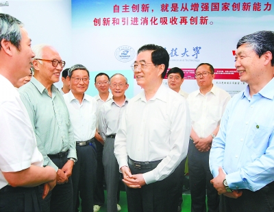 设在华中科技大学的武汉光电国家实验室是一所从事光电领域基础研究和战略高技术研究的科研机构,筹建以来获得了一大批重要科研成果。胡锦涛走进这个国家实验室的信息光电子、能源光电子和生物医学光电子研究中心,看实验、问原理、话应用,了解最新科研进展。总书记特别强调,科技创新,人才为先。要依托国家实验室这个平台,进一步聚集人才、培养人才,更好地发挥创新型科技人才的作用,努力在光电领域取得更多原创性科研成果。华中科技大学几位学术和科研带头人也来到实验室,总书记同他们亲切交谈,祝愿他们在教学科研中不断作出新的建树。华中科技大学一些学生闻讯簇拥到实验室门前,向总书记热情问好,胡锦涛勉励学生们刻苦学习、尽快成才。