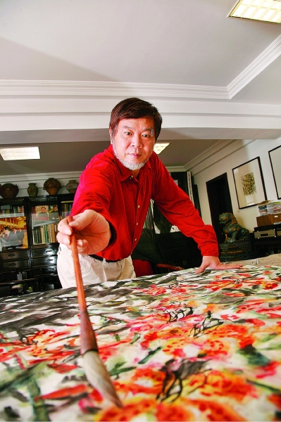 今年上半年,全国政协委员、浙江省政协常委、著名花鸟画大家何水法过得异常繁忙。春节期间,他在杭州某宾馆的大会议室里连续奋战,为个人画展创作新品;2月底,新作完成送去装裱,他又利用难得的闲暇时光斟酌早已修改了无数次的政协提案;3月份赴北京参加两会,4月份又赶赴洛阳举办画展,5月份则为《富春山居图》海峡两岸合璧展多方奔走,6月初回到杭州后又为美术报组织的“名家工作室”项目外出写生创作。