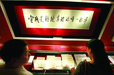 6月24日,北京市各地的党员干部正在参观由中共中央党校、中央档案馆、北京市委宣传部、西城区委联合主办的“纪念中国共产党成立90周年档案资料展”。1988年5月11日,邓小平为光明日报出版社出版的《真理标准讨论纪念文集》一书的题词吸引了众多观众。 本报记者 杨慧峰摄
