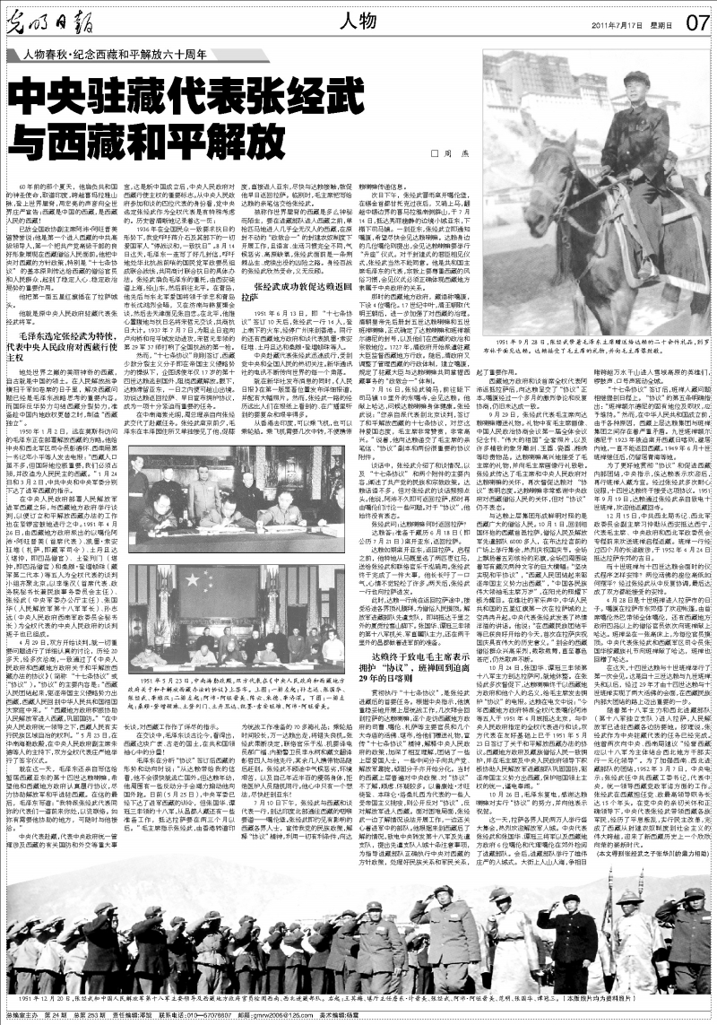中央驻藏代表张经武与西藏和平解放