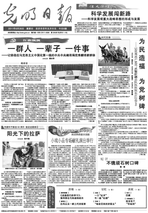 河北省滦南县读者刘奂明:6月26日,光明日报头版头条的《一群人 一辈子 一件事》及系列报道,情感真挚,血肉丰满,感人肺腑,催人泪下。毫无疑问,这是光明日报为中国共产党九十华诞敬献的一份厚礼。人们的印象中,理论界典型宣传好像比较枯燥乏味,弄不好就曲高和寡,既不大容易吸引读者,也不大容易受人关注。而这组系列报道,用受众喜闻乐见、自然亲切、百读不厌的表达方式和鲜活生动、妙趣横生、雅俗共赏的文字表述,抓住了主人公最感人的亮点,成功塑造了一个又一个有血有肉、特色鲜明的人物典型。