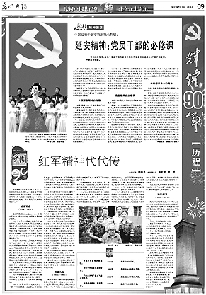 江苏省泰州市读者陆彩鸣:6月20日至7月2日,光明日报连续13天隆重推出了“庆祝中国共产党成立90周年特刊”。特刊开设了“精神溯源”专栏,从国防大学战略研究所所长金一南谈《是什么染成这永恒的“红”》,到中国延安干部学院副院长靳铭谈《延安精神:党员干部的必修课》,一篇篇文章,集中展示了中国共产党走过的光辉历程以及形成的伟大精神,并以专家学者的视野,对这些精神进行了解读和溯源。专栏形式活泼,篇幅精悍,令人爱看。这一专栏,精心谋划,精心选题,回答了广大读者最关心的重大理论和现实问题,在理论宣传大众化方面进行了成功的尝试。