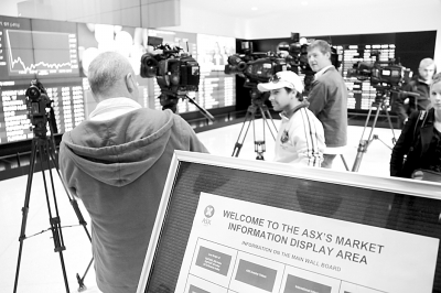 8月8日,媒体记者在悉尼的澳大利亚证券交易所采访。受美国主权信用评级遭标准普尔下调等因素影响,当日澳大利亚股市开盘后不久主要股指即下挫。新华社记者 傅云威摄
