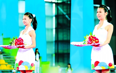 大运会上漂亮的礼仪小姐。本报记者 杨慧峰摄