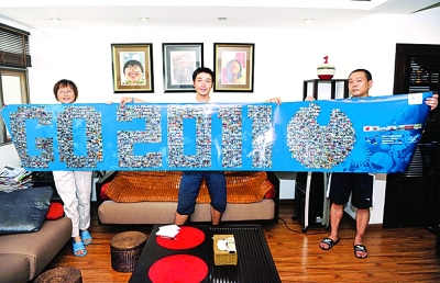 周子迁:万里骑行宣传绿色大运,收集2011个笑脸为大运祝福。   新华社记者 陈晔华摄