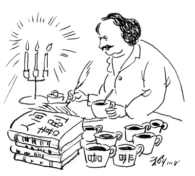 巴尔扎克是个写作狂,每天工作12个小时,还要拿出许多时间来阅读。他每写一部作品少则修改几遍,多则十五六遍。巴尔扎克为创作殚精竭虑、呕心沥血,长时间的体力透支和大量饮用咖啡,使他在50岁时患血热症与世长辞。文学巨擘雨果在巴尔扎克的葬礼上曾这样说:在最伟大的人物中,巴尔扎克是头等的一个;在最优秀的人物中,巴尔扎克是出类拔萃的一个,他的才智是惊人和不同凡响的。