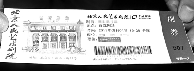 “要票吗?陈道明主演的话剧。”见有人走近,一小伙子手握着两张票迎了上来。