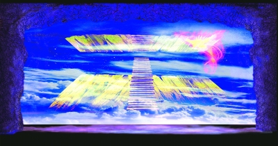 赵丽华介绍,《女娲》大量运用了机械装置。在剧中,不仅有两个大型怪兽的造型装置,有天地开合的镜像,有祝融、共工的坐骑,而且有一个女娲升天之用、会翻转的天梯,同时还有投影、水舞台。
