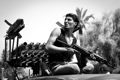8月26日,在利比亚首都的黎波里的阿布萨利姆地区,反对派士兵巡逻查找卡扎菲残余部队。利比亚反对派武装当天继续与忠于卡扎菲的部队在的黎波里以及撒巴哈等地区交战,卡扎菲及其家人仍然下落不明。新华社发