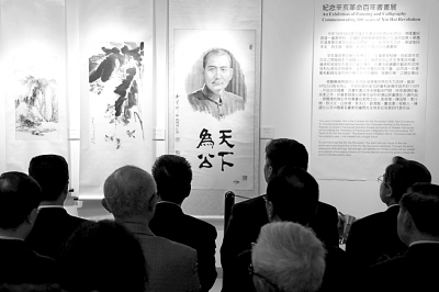 9月3日,在加拿大温哥华中华文化中心文物馆,嘉宾在欣赏书画作品。当日,“纪念辛亥革命百年书画展”在温哥华举行。书画展以“纪念辛亥百年、展望美好未来”为主题,由中国驻温哥华总领馆联合大温地区华人华侨举办。新华社发