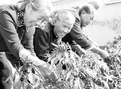 “俺现在吃的可是绿色环保的自家菜!”10月20日,山东省东营市东营区史口镇商英先等4名老人在由东营边防支队援建的敬老院“开心农场”里收获辣椒。东营市积极探索农村社会养老模式,推行互助模式养老,既节约了政府投资,又让老人们老有所养、老有所乐。 本报记者 刘新武 本报通讯员 刘智峰摄