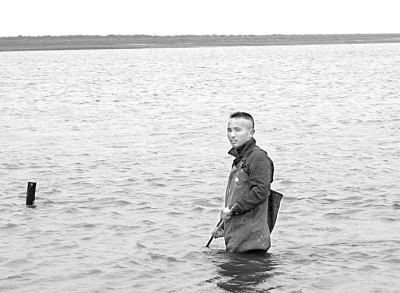 11月9日,江西棠荫水文站。风很大,雨在下,个子不高的“80后”站长吴兆福一个人背着下水裤,踩着泥泞,走向湖水中央的水位观测点,一条小狗静静地陪伴着他;