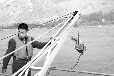 11月3日,青海循化水文站。入冬的黄河上游冷风刺骨,测船上,小伙子吴兴摇着100公斤重的铅鱼,小心地把它浸入水中,准备测量流速。等他直起身来,才发现油污沾了一身;