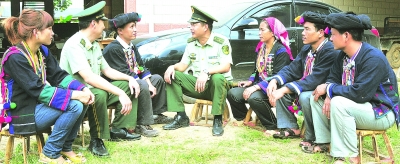 当晨雾散开,我们来到普洱茶的产地布朗山,布朗山边防派出所警官曹简正组织布朗族青年采摘谷花茶。2005年起西双版纳边防支队推行警官任村官制度,帮助各族群众结合自然条件和传统习俗,“一村一品”发展经济。景洪大队政委李雄武说,警官任村官对边疆的基层组织建设和思想建设发挥着特殊的作用。