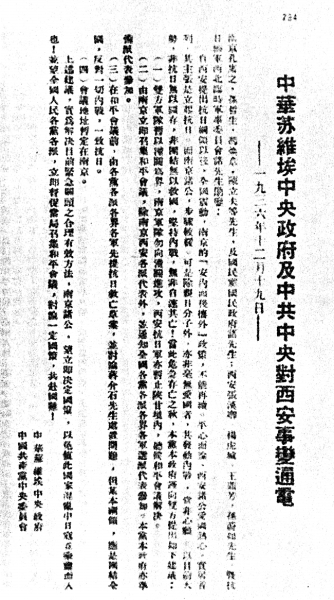 为阻止这种严峻局面,12月21日,中共中央致电周恩来,要周与张、杨商量“争取蒋介石”,与之谈判,并提出改组南京政府、停止讨伐西安、保障民主权利、与红军联合抗日、与同情中国抗日的国家合作等条件,明确指出“在上述条件有相当保证时,恢复蒋介石之自由,并在上述条件下赞助中国统一,一致对日”。