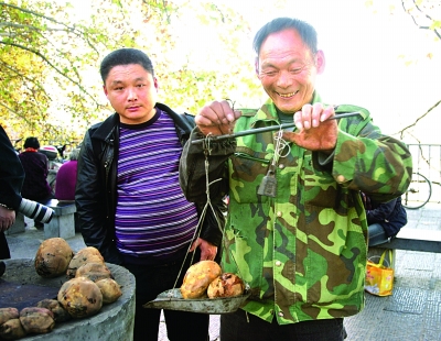 今年52岁的王万杰是河南省洛阳市龙门石窟风景区内的一名普通农民。近几年,党的富民政策让他尝到了甜头。连续几年,他家种植的白薯都是大丰收,每亩地产白薯都在2000斤以上。这些白薯可是他的“摇钱树”,由于家在风景区内,他便利用天时、地利、人和的优势,在自家门口烤白薯卖,烤熟后的白薯卖到了5元钱一斤的好价格,一年下来收入相当可观。图为王万杰在风景区内卖自产自烤的白薯。