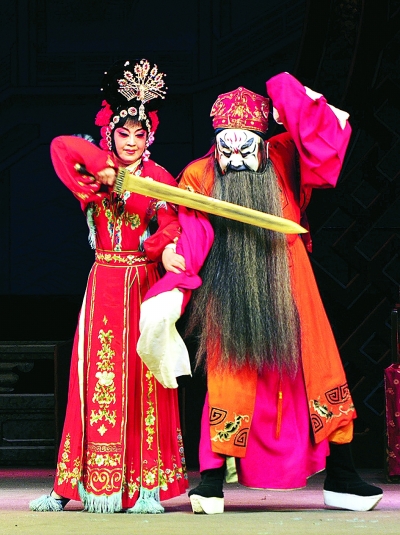 12月7日,演员在表演陇剧《枫洛池》。当日,甘肃省陇剧院打造的新版大型历史陇剧《枫洛池》在兰州金城大剧院上演。