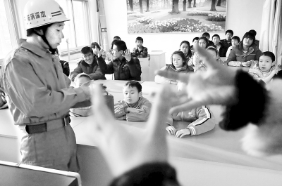 寒假即将到来之际,辽宁省本溪市消防支队明山消防大队在本溪市特殊教育学校开展主题为“安全消防、快乐寒假”的活动,消防战士与手语教师共同为30余名聋哑学生讲解了消防器材的使用、日常防火及逃生自救等消防知识。图为手语教师在为学生翻译灭火器的使用方法。本报记者 毕玉才 本报通讯员 蔡冰摄