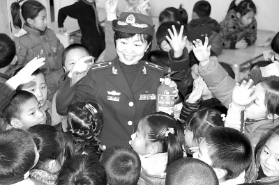 黑龙江省齐齐哈尔市消防支队宣传人员日前深入辖区为龙沙小学的孩子们上消防安全教育课。图为宣传人员正在向孩子们介绍灭火器的使用方法。本报通讯员 田野摄