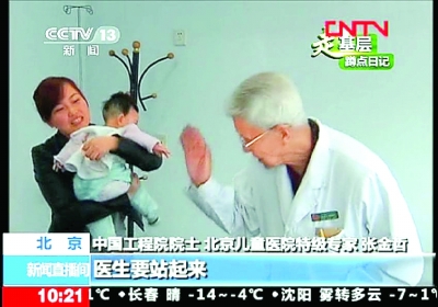 张萍:儿童医院我们一共做了七集,头两集我们把一老一少两位医生作为报道的主角。第一集《小儿外科之父和他的“孩子们”》,第二集《“人见人爱”的贾叔叔》。在节目中,观众记住了中国小儿外科之父、91岁的张金哲院士,也认识了被小朋友称为“人见人爱,花见花开,车见车爆胎”的80后医生贾晨光。