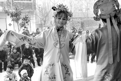 元旦期间,一台具有地方特色的剧种柳琴戏呈现在河南永城大王集乡代营村的村民面前。该戏曲堪称河南稀有剧种中的“一枝花”,以唱腔柔润、曲调优美的拉魂腔流行于苏北、鲁南、皖北及豫东地区。