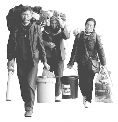 “明天就可以回家了。不过到了宝鸡还要倒车。”在北京西站北广场,记者遇到了余立兵,他兴奋地从兜里拿出一张29日从北京到宝鸡的T55次车票。余立兵的老家在陕西汉中市略阳县,买这张车票花了309元。