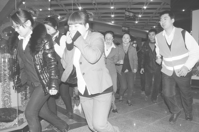 佳木斯市某商场正在进行消防演练,消防疏散员带领大家快速从疏散通道逃生。刘欣摄