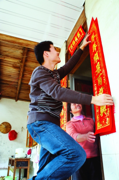 这是一座干净整洁的农家小院,三间平房错落有致,墙体是崭新的白,每间房门上都贴着“出入平安”几个大字。除了新春福字,窗户上还多了几对红双喜。“今年过年,我们家不仅迎春还要嫁女——过几天我姐姐就要出嫁了,我们闽南地区有一个‘送嫁’的传统习俗,我这个做弟弟的要全程把姐姐平安地送到男方家里,再远也要送。”简林强满脸欢喜。