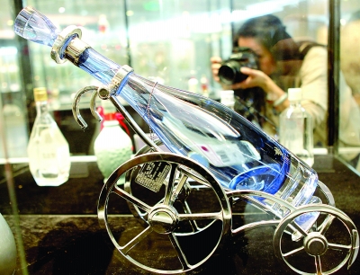 1月11日,观众在欣赏珍品白酒。日前,由中国收藏家协会主办的“首届中国白酒文化收藏展”在北京中华世纪坛开幕,集中展示近百支中国收藏级名优珍品白酒。