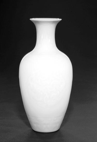 此瓶造型挺拔秀雅,通体施以肥厚的青釉,“如冰类玉”的釉汁质感温润清雅,又有减地法雕刻而成的纹样饰于其身,颈部为蕉叶纹和朵花纹交错分布,肩部饰以与颈部相同的朵花纹形成纹饰带,肩部有一周如意云头纹,下团状夔纹均匀分布于腹部一周,胫部饰朵花纹及如意云头纹各一周款。瓶身各类纹样在浓郁的釉层下若隐若现,清新而含蓄,配以雅致的体态,实在赏心悦目。纵观国内外公私著录,不见有与本品造型、纹饰皆相似者,故该瓶当为海内外孤品,其珍罕程度自不言而喻。