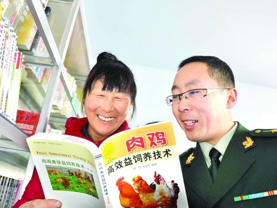 1月10日,三家子边防派出所民警聂鑫指导村民王春利学习肉鸡饲养技术。进入冬季农闲时节,吉林省延边朝鲜族自治州三家子满族自治乡的村民们在延边边防支队三家子边防派出所民警的组织下,走进农家书屋“猫冬”充电。