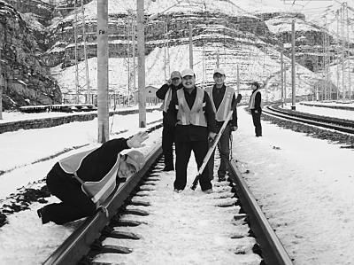 见到王进时,他刚从隧道里钻出来,一脸煤黑,咧嘴笑时,一口白牙。王进是线路车间下辖的河南寺工区工长,2002年转业来到王家湾,一干就是10年。他所在的河南寺工区,处在群山环绕之中,在冬天,每天只能见到两个小时的太阳,大部分时间都在阴冷的包围中。“经常口罩外都结冰透不过气来,嘴巴下边全是冰碴。”王进说。但就是在这样的艰苦环境下,河南寺工区实现了连续二十多年的安全生产无事故。